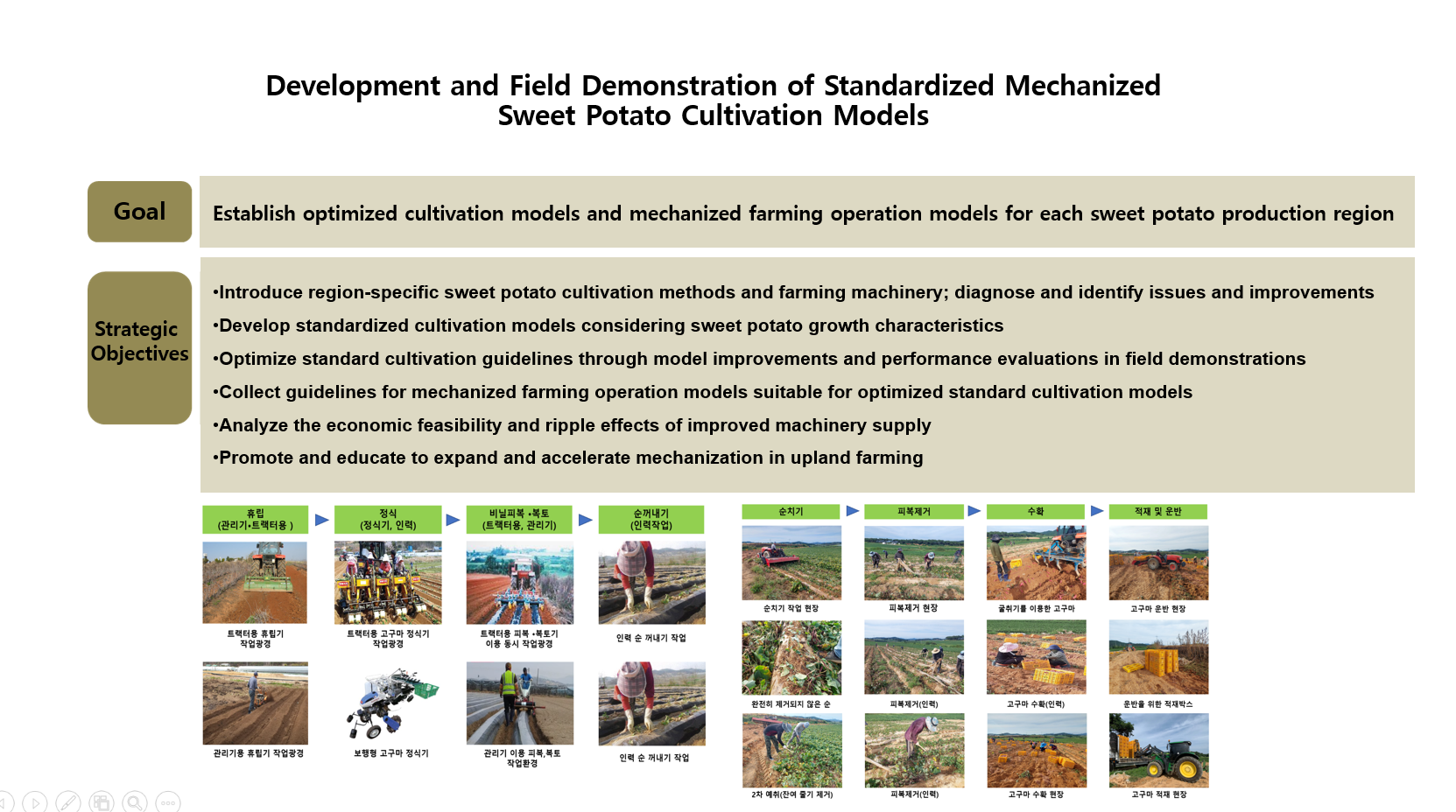 1. Development and field demonstration of mechanization standard cultivation model for sweet potato (2023–)